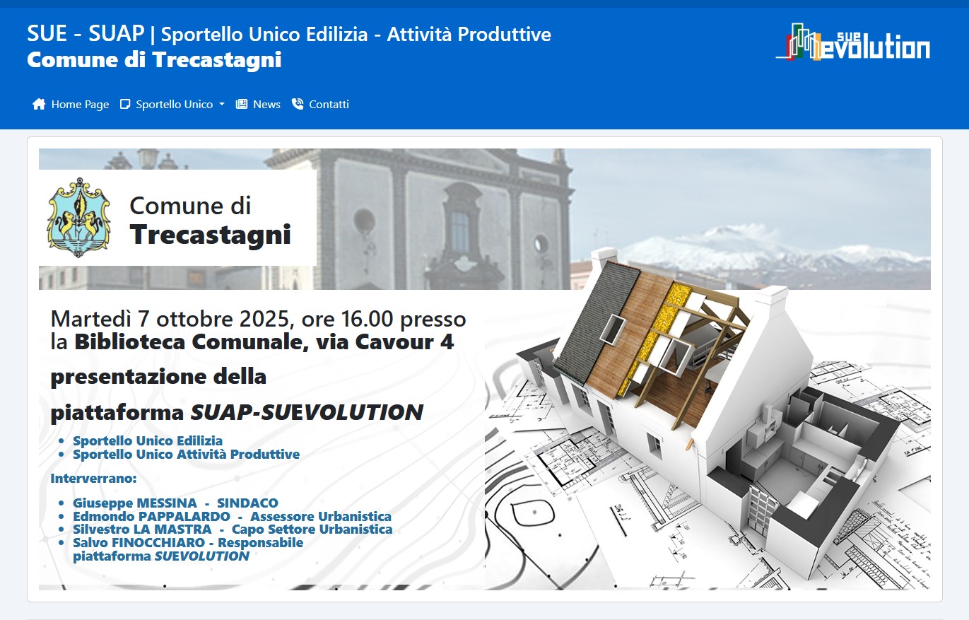 Presentazione della piattaforma dedicata allo Sportello Unico Edilizia (SUE) e allo Sportello Unico Attività Produttive (SUAP) del Comune di Trecastagni.